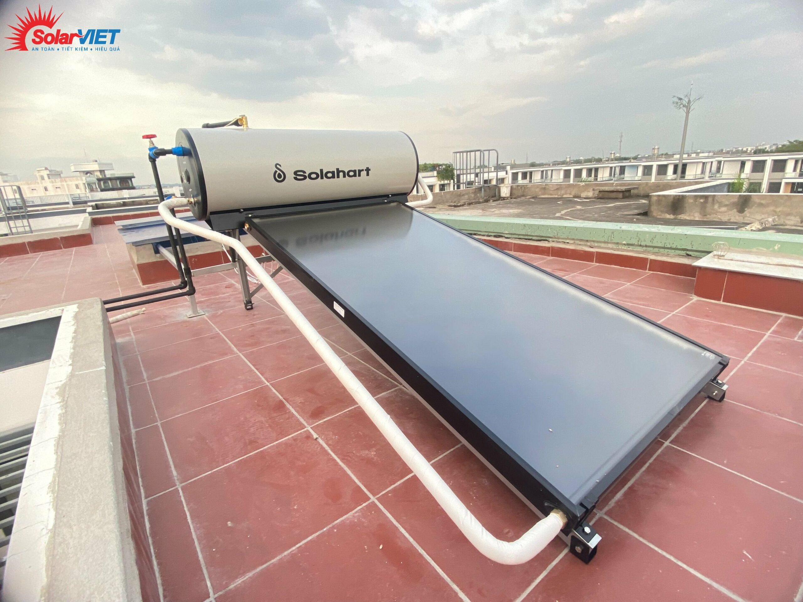 Bồn Solahart chịu được áp cao, áp lực tối đa lên đến 800 kpa, trường hợp nhà mái ngói như hình trên, các bồn lạnh nằm bên dưới ngói phải kết hợp dùng bơm tăng áp đẩy nước lên để gia nhiệt, Solahart luôn làm tốt nhiệm vụ này vì máy hoàn toàn chịu được áp lực cao.