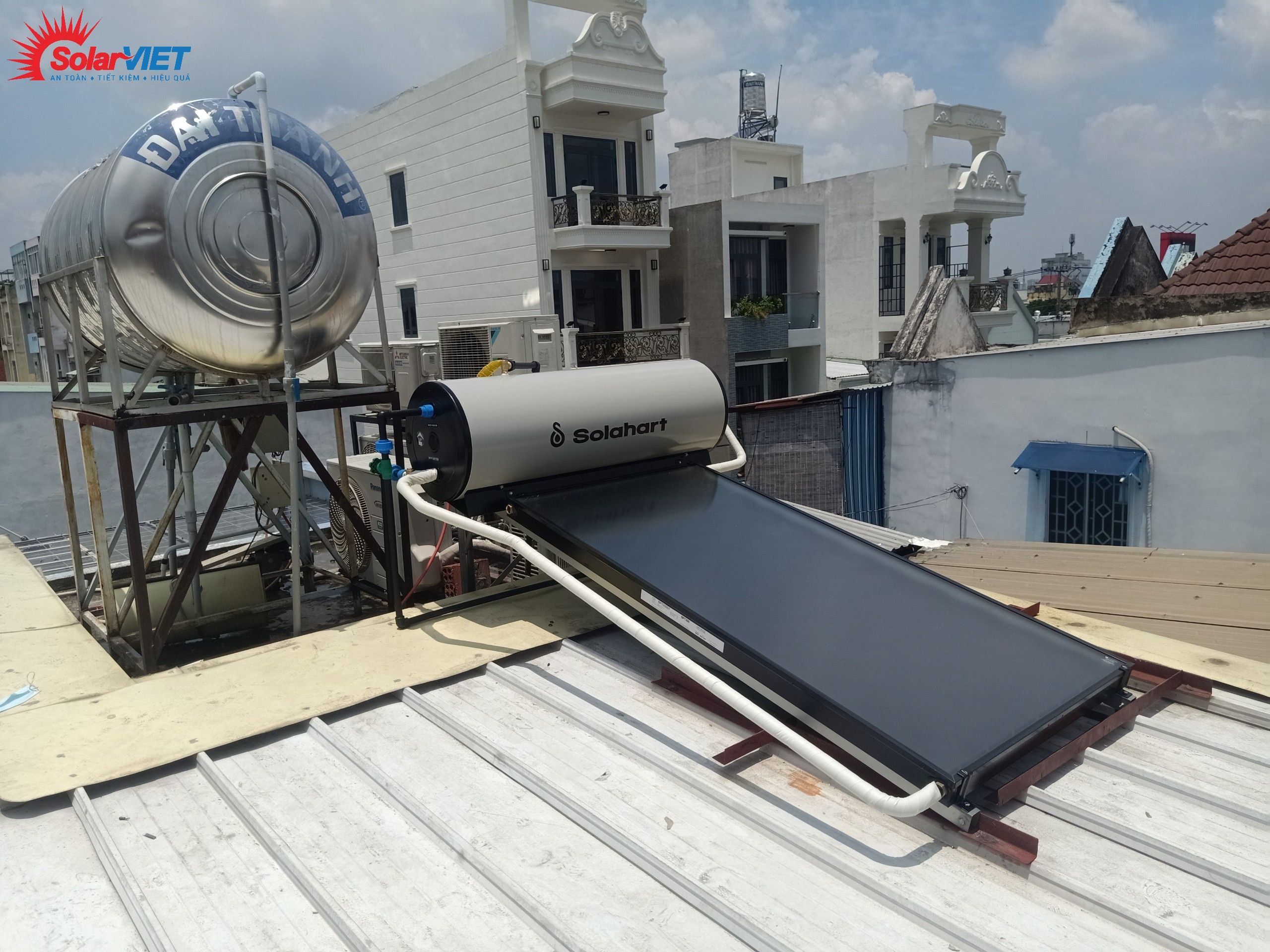 Các linh kiện kết nối giữa bồn và tấm của Solahart là bằng đồng nên khi sử dụng ít phải bảo hành và bảo trì, vật tư đấu nối máy được công ty SolarViet sử dụng vật tư Bình Minh loại tốt, khả năng chịu nhiệt cao.