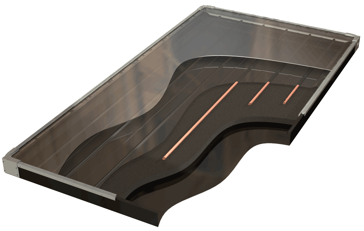 Kính thu nhiệt Model L với các ống đồng dẫn nước nóng & bề mặt là Alumium thích hợp lắp đặt trong những khu vực nắng như Việt Nam. Tất cả các tấm thu nhiệt của Solahart đều sử dụng kính cường lực để truyền nhiệt tối đa & giảm thiểu sự va chạm.